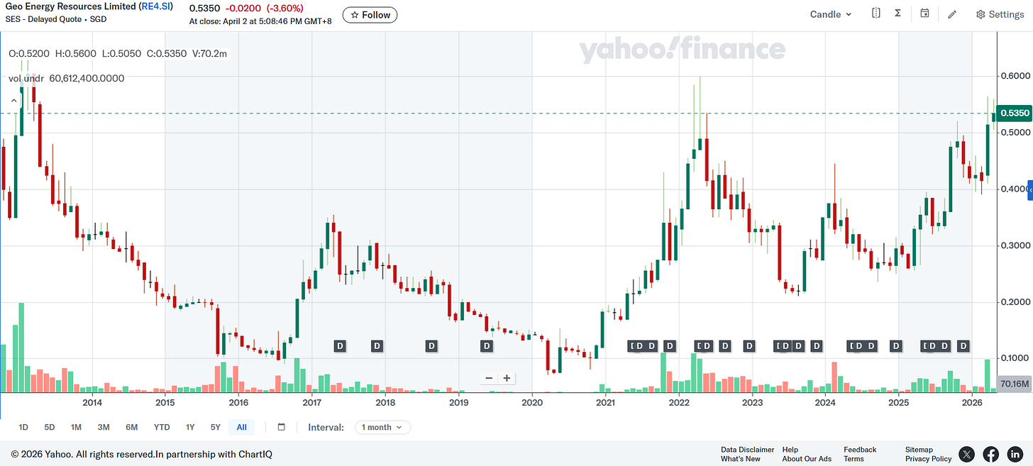 📰 PhillipCapital’s Chew raises target price for Geo Energy to 75 cents (The Edge Singapore) Mar 16, 2026 $