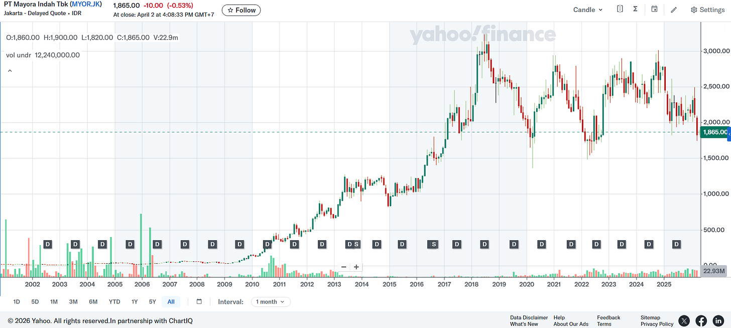 🇮🇩 Mayora Indah Tbk PT (IDX: MYOR / FRA: D7V / OTCMKTS: PTMYF) – Food & beverage company recognized as the world’s largest coffee candy manufacturer through the Kopiko brand. 3 segments: Packaged Food Processing, Packaged Beverages Processing & Financial Services. 🇼 🏷️