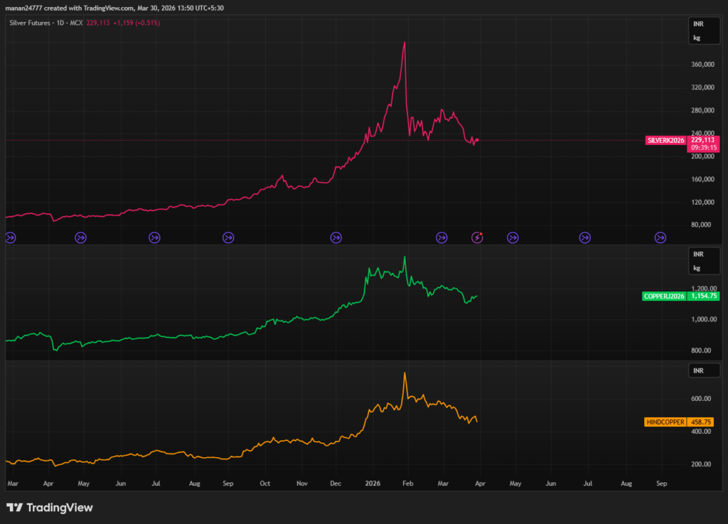 The automobile sector also benefited from festive demand and GST cuts. Passenger vehicle sales reached around 4.7 lakh units in October 2025, up 17 percent from October 2024, surpassing the previous record of 4.05 lakh units set in January 2025. Maruti Suzuki sold 1,76,318 units, Tata Motors reported 61,134 units, and Mahindra & Mahindra recorded 71,624 SUV sales, up 31 percent. At the same time, the metals sector gained momentum as copper prices surged globally. On December 29, 2025, Hindustan Copper rose 15 percent to a record Rs. 545.95, while copper futures on MCX touched an all-time high of Rs. 1,372.60 per kilogram, supported by supply disruptions in Indonesia and Chile. During the same period, silver prices crossed the milestone of Rs. 2 lakh per kilogram, reaching Rs. 2,00,362 per kilogram on MCX, reflecting strong investor demand.